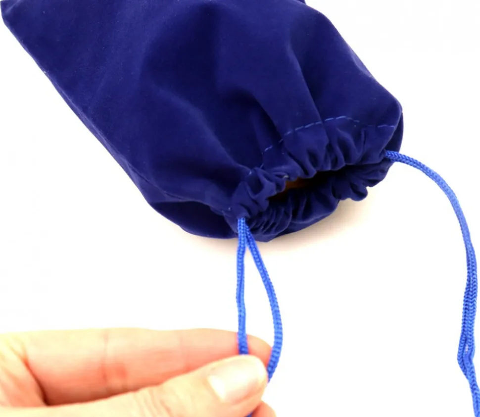 Sacs bleus pour ranger vos accessoires de jeux : dés, pions, jetons, pièces diverses, cartes… (peut contenir environ 90 à 100 dés)