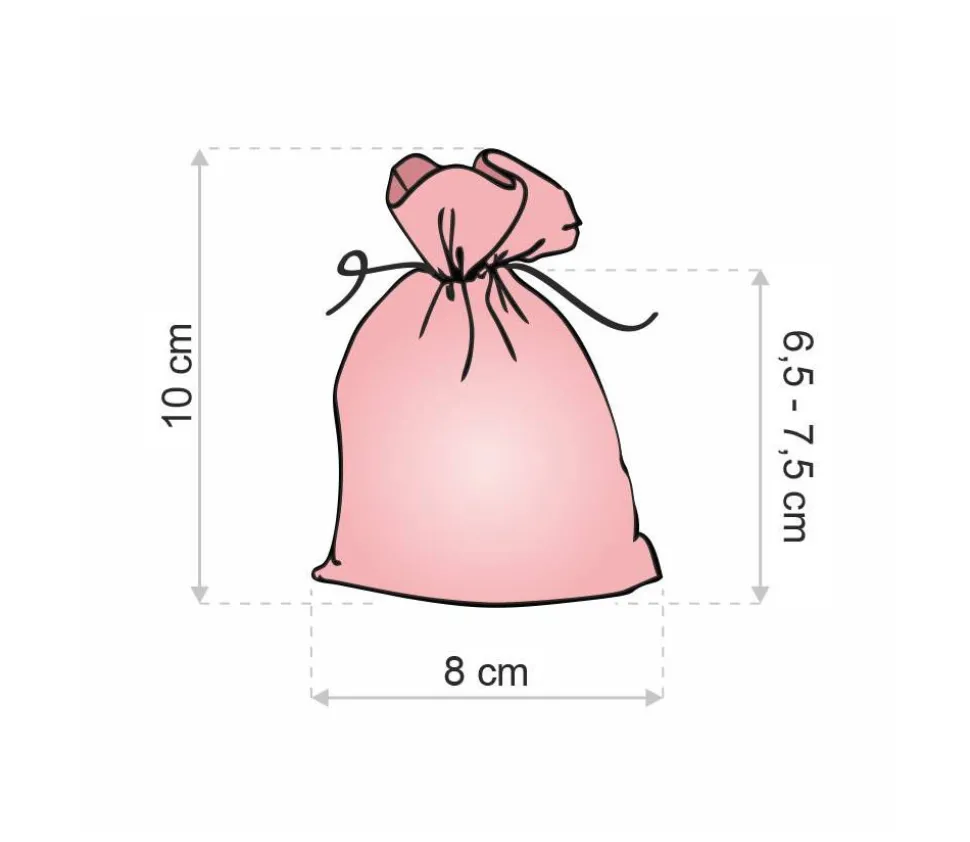 Les dimensions du sac sont 100 mm de hauteur x 80 mm de largeur environ