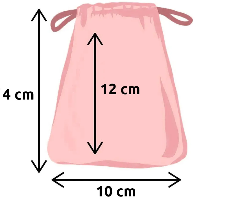 Dimensions du sac tissu pour accessoires de jeu : 14 x 10 cm