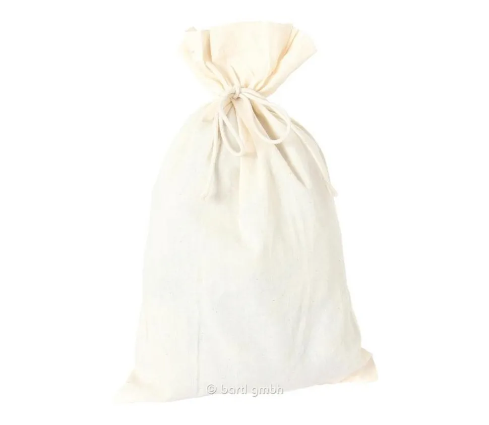 Sac tissu 100% coton avec un cordon séparé pour la fermeture (pour nos autres sacs, la cordelette est intégré dans l’ourlet)
