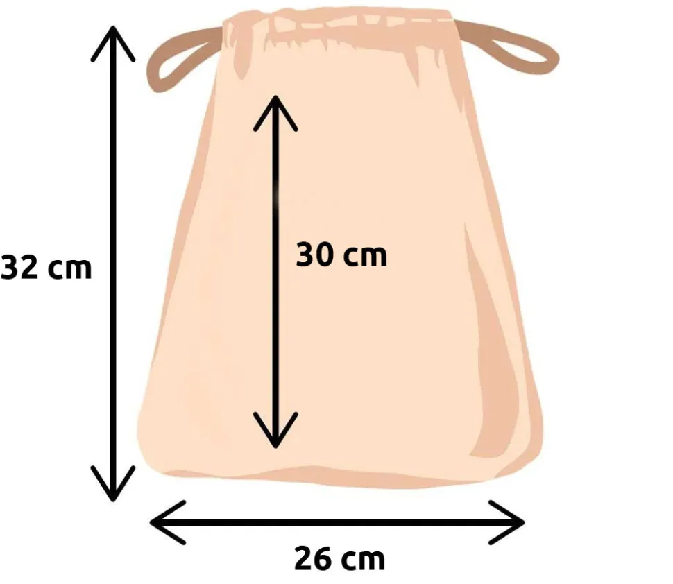 Dimensions du sac tissu pour accessoires de jeu modèle L : 32 x 26 cm