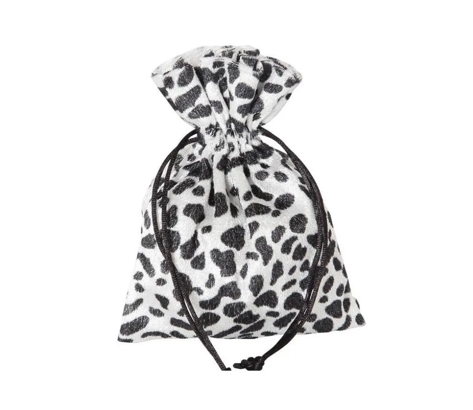 Sac touché velours effet « vache » tacheté noir. Sac d’environ 17 x 12 cm pour accessoires de jeu ou comme conditionnement pour vos petits produits.