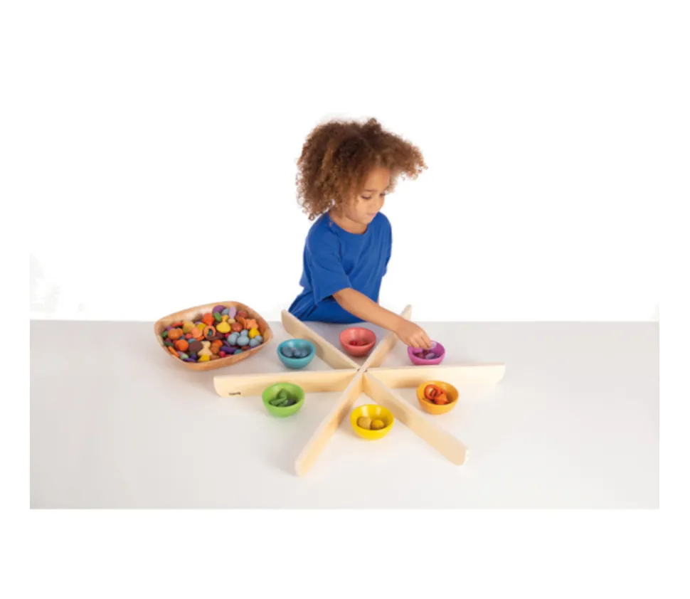 A placer sur une table ou directement au sol, vous pourrez créer des jeux de tri pour que les enfants apprennent à ranger, compter et aborder les mathématiques de façon ludique et amusante en manipulant divers objets.