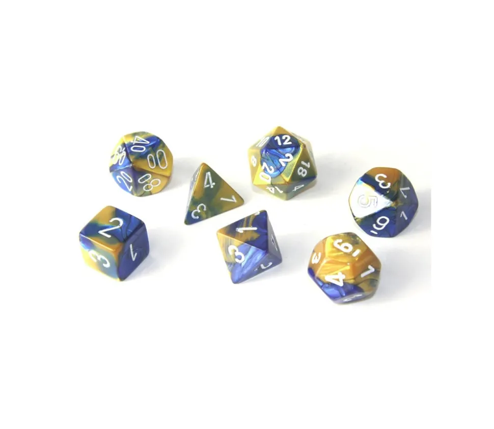 Dé de la gamme Chessex référence 26422 (Blue gold gemini).