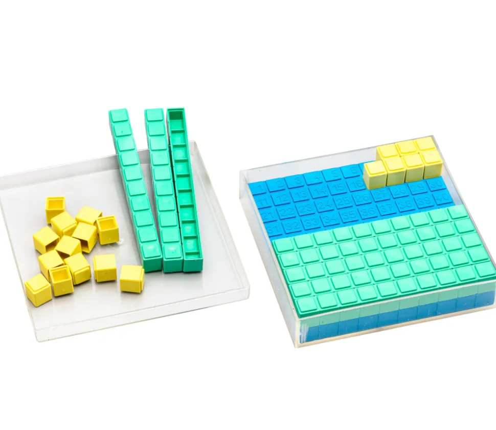 Permet de visualiser la décomposition du nombre jusqu’à 100 et facilite l’apprentissage des opérations de base par manipulation.