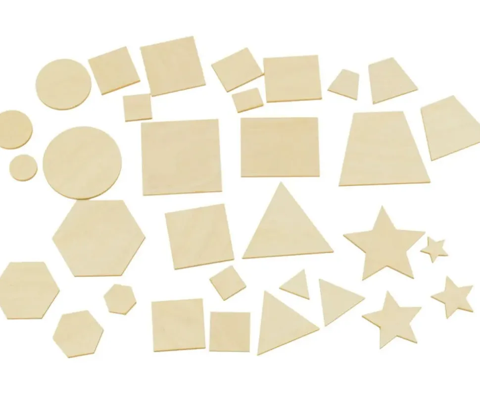 32 formes géométriques en bois pour apprendre les notions de comparaisons tels que de plus petit que… et plus grand que…