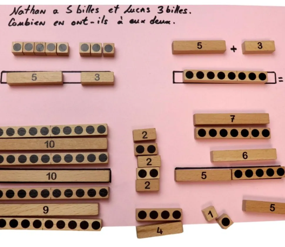 Un kit de réglettes de manipulation conçu en collaboration avec les éditions HATIER pour favoriser la manipulation, l’expérimentation et la visualisation des connaissances essentielles dans le domaine des nombres et du calcul.