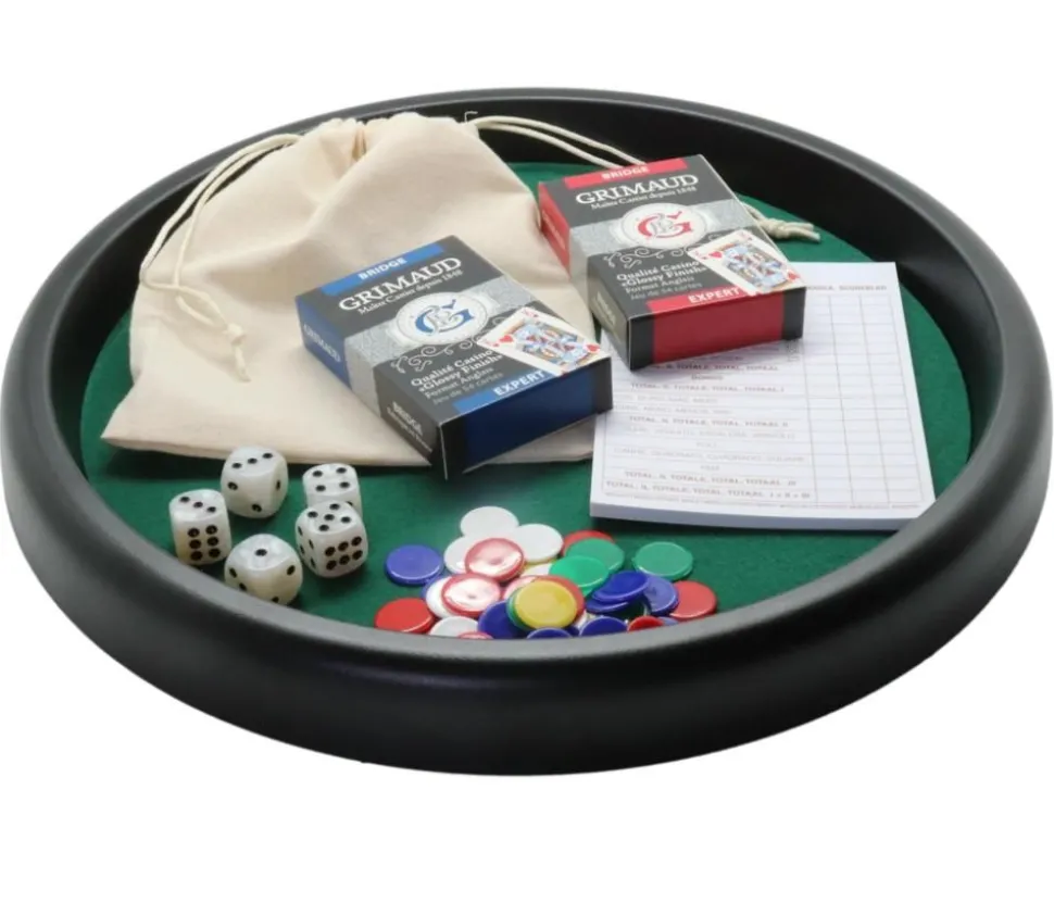 Set avec des nombreux accessoires de jeux pour jouer à tous vos jeux de société traditionnels de dés et de cartes.