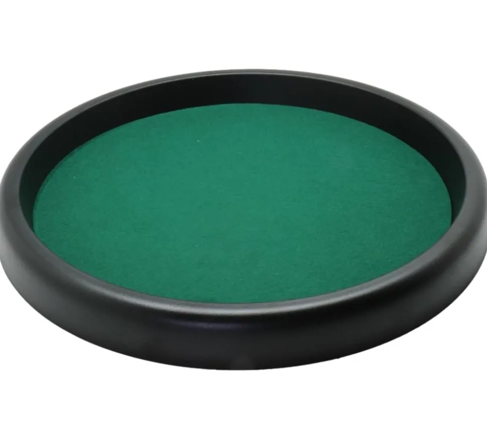 Piste ronde de dés à jouer en plastique standard avec fond central en feutrine verte.