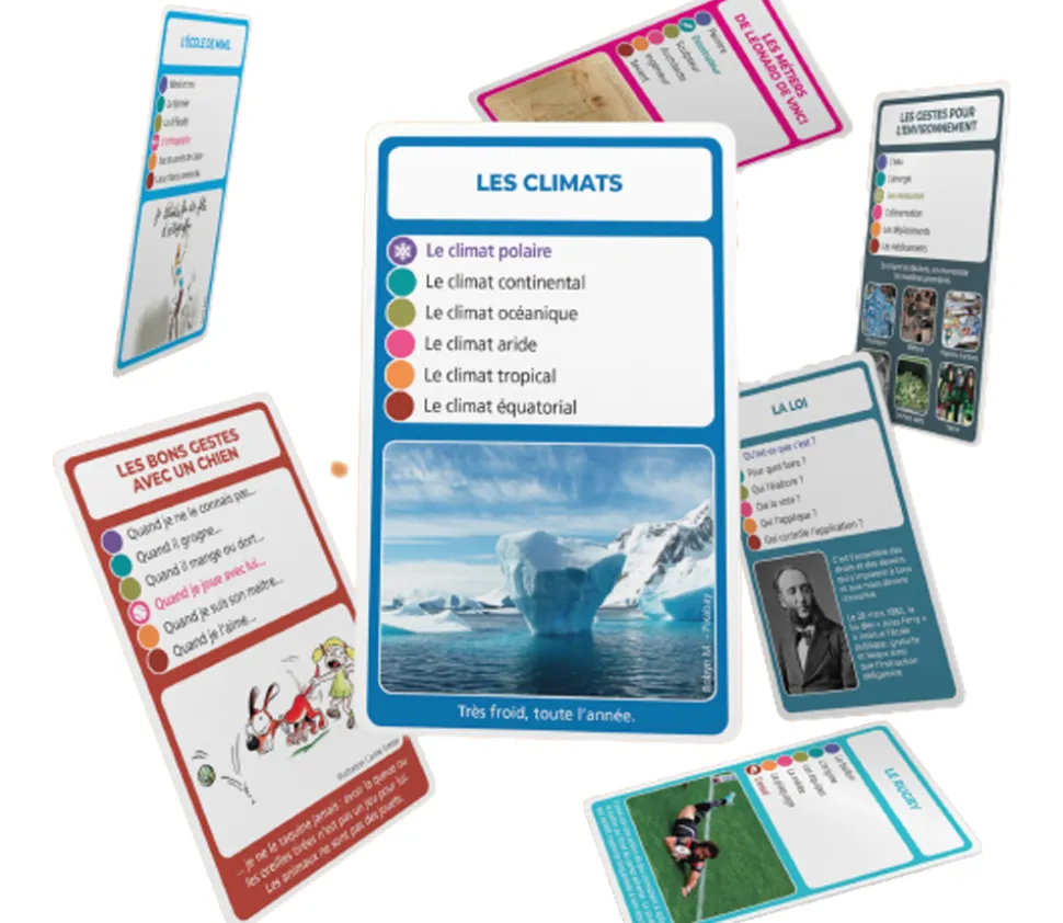 Jeu SoCartes, jeu de cartes façon 7 familles thèmes sur programme scolaire élémentaire. Jeu éducatif et amusant pour enrichir les connaissances générales.
