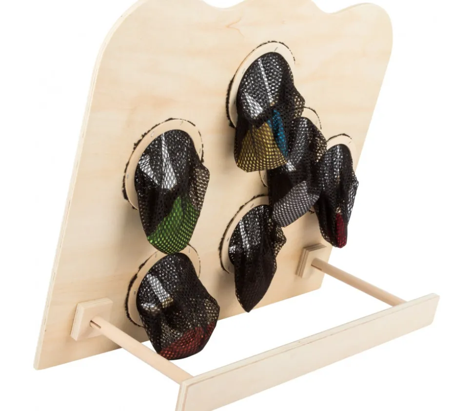 - 1 stand de lancer en bois 42 x 35 cm avec 6 trous de 100 à 600 points