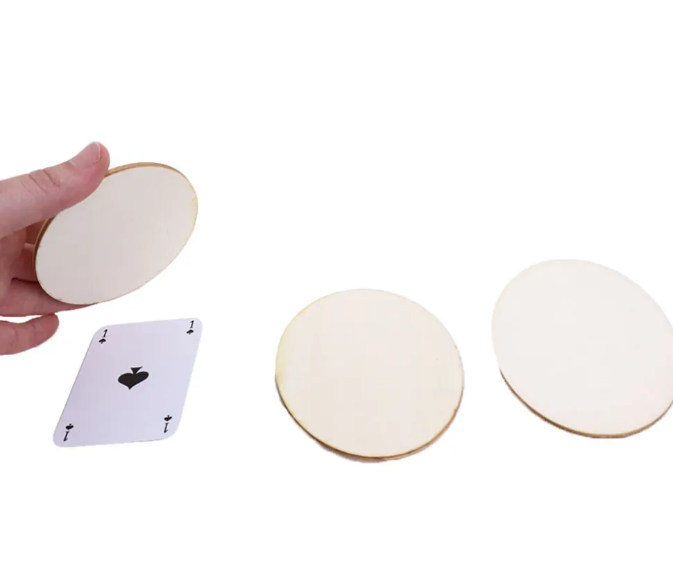 Dimensions de ce plateau de jeu en bois neutre ovale : 13 x 8.5 cm. Epaisseur 3 mm
