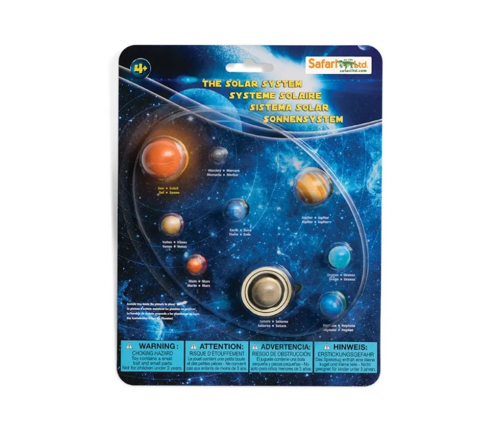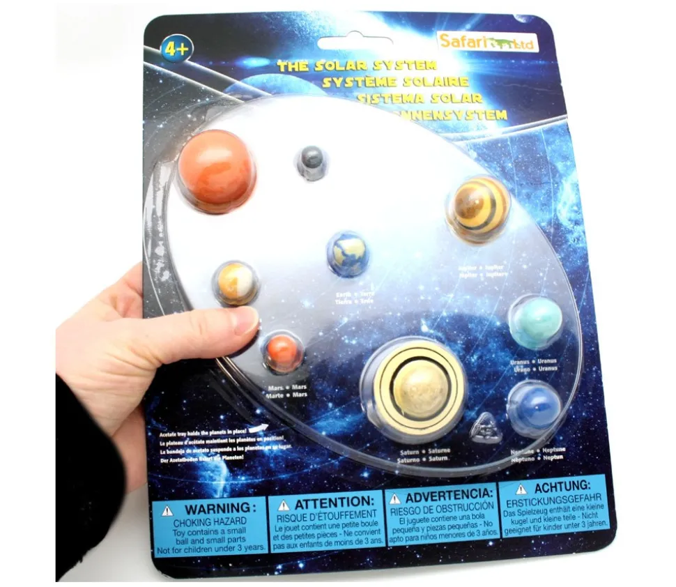 Caractéristiques : Ces 9 figurines planètes peuvent être jouées avec ou sans le plateau d’acétate qui les montre dans leurs orbites par rapport au soleil. Les différences de taille entre les planètes sont distinguables pour la valeur éducative supplémentaire.