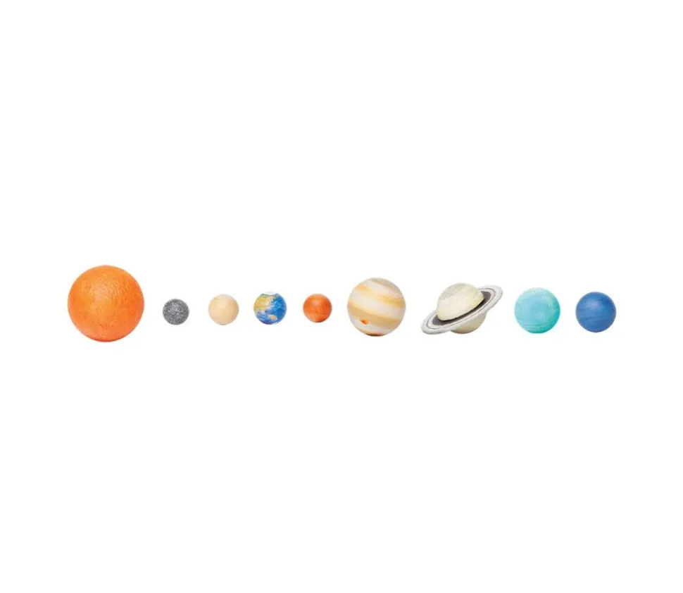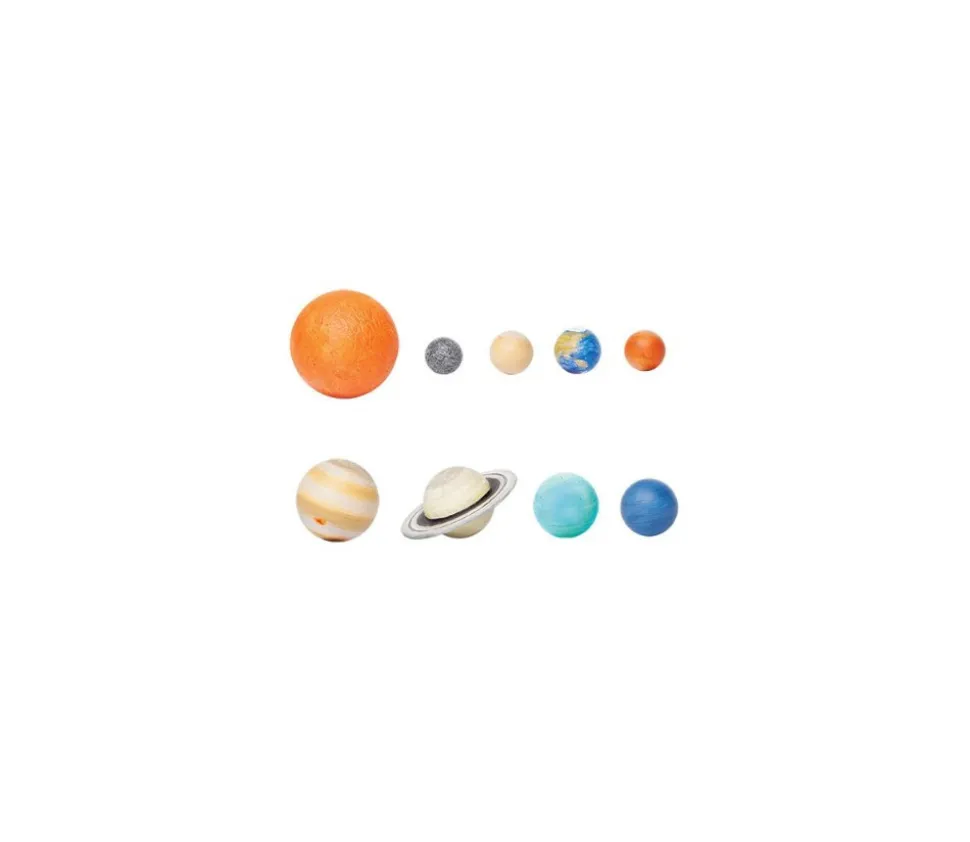 Taille et Couleur : Le soleil a un diamètre équivalent à une balle de golf et les tailles diminuent pour représenter jusqu’à la minuscule Mercure. Ce système solaire est réalisé avec des couleurs fortement précises et des détails.