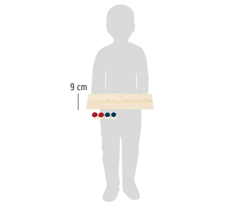 Dimensions de la plaque : 30 x 9 x 2 cm, 22 jetons bicolores de 2.5 cm de diamètre