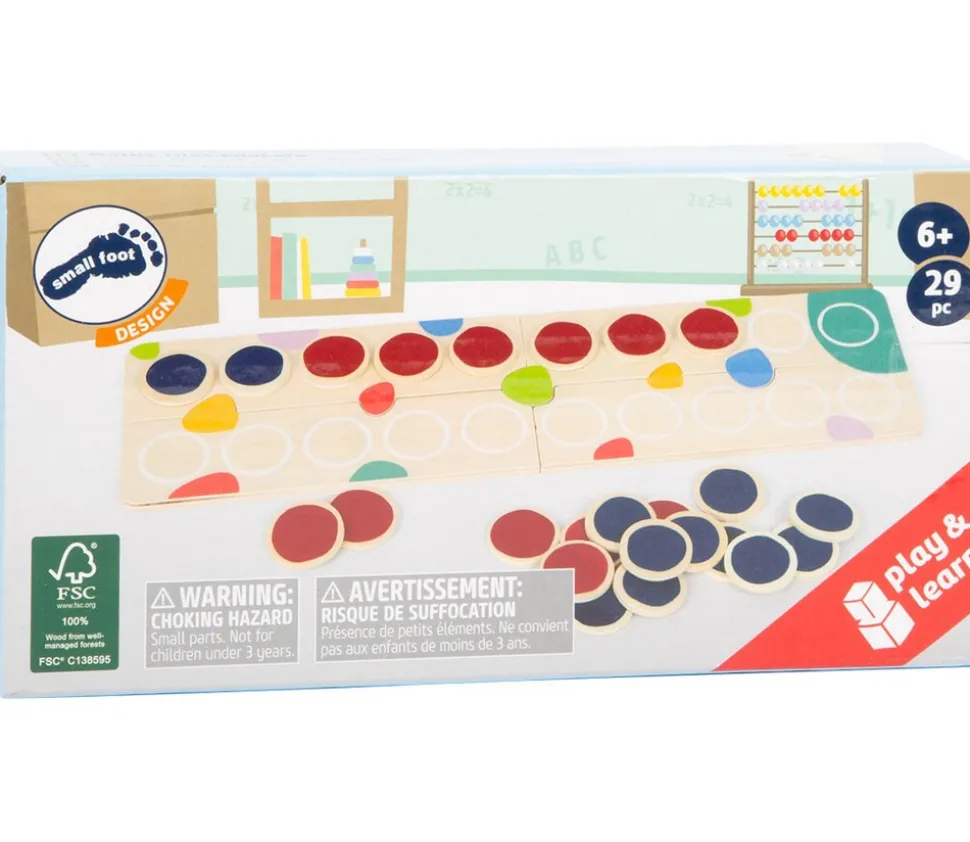 Jeu composé d’une plaque et de 22 jetons bicolores, idéal pour l’apprentissage des premières opérations addition, soustraction, reconnaissance des nombres pairs ou impairs.