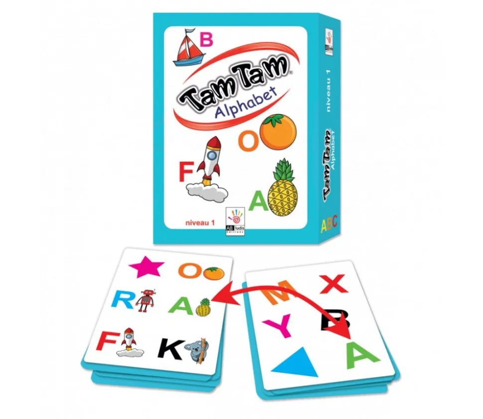 Grâce à des cartes imagées et à des règles simples, Tam Tam Alphabet permet à l’enfant de découvrir les lettres de manière ludique.