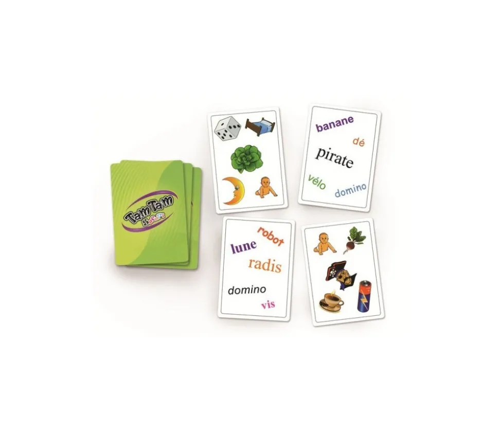 Principe du jeu Tamtam : Le joueur doit retrouver l’unique paire image-mot qui existe entre une carte-images et une carte-mots.