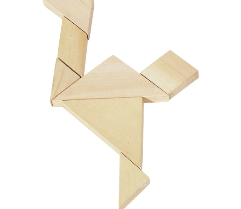 Ce jeu de tangram en bois naturel permettra de jouer avec les 7 pièces pour reformer le traditionnel carré ou tenter de réaliser d’autres figures : animaux, personnages, bateaux…