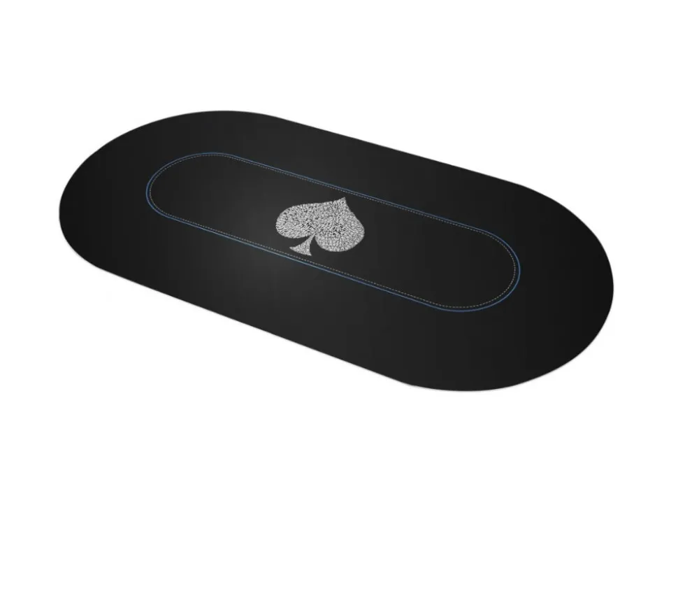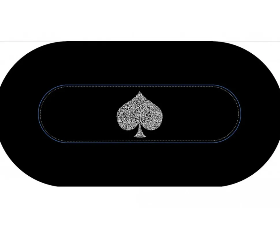 Tapis de jeu pour jeu de Poker de 120x60cm. Qualité professionnelle. Tapis néoprène – Jersey antidérapant. Super glisse des cartes. Très bonne qualité. Tapis de jeu ovale noir pour organiser des parties de jeux de Poker ou autres jeux comme un professionnel. Tapis livré dans une housse de rangement. Tapis pour les vrais joueurs de Poker. Ovale noir avec motif pique Typo spade.