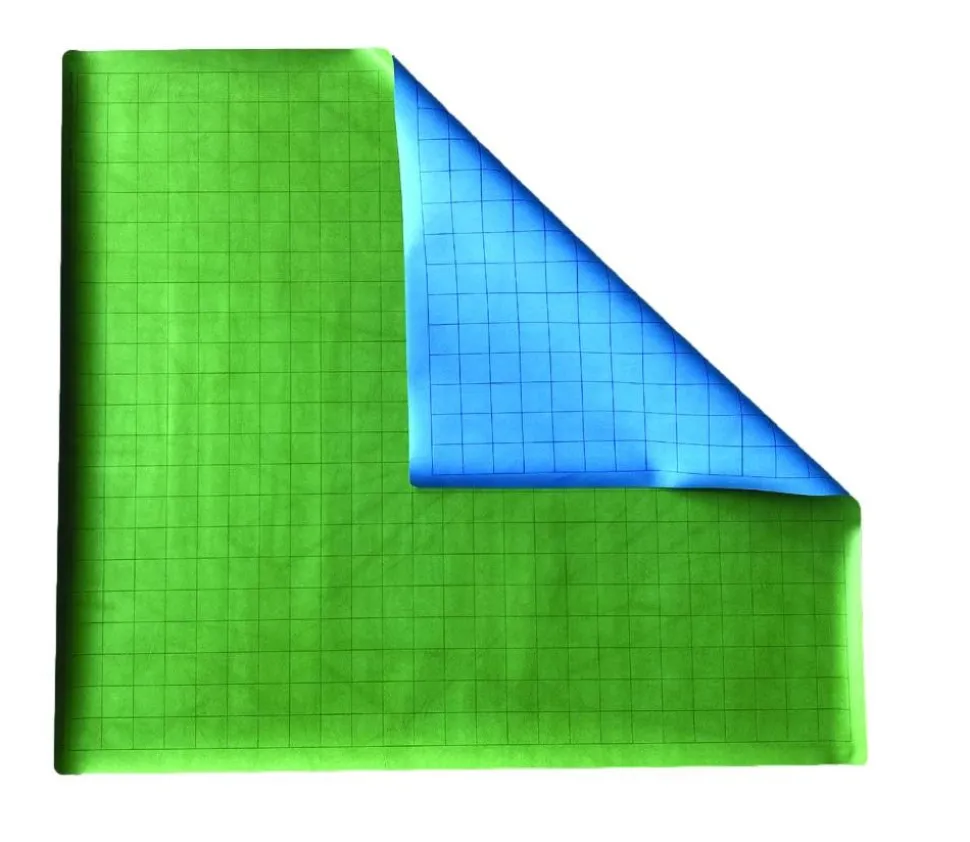 Plateaux de jeu en vinyle couleur bleu et vert (voir photo). Battle map personnalisable.
