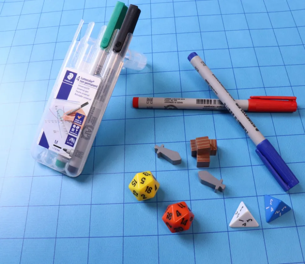 Plateau de jeu neutre avec des quadrillages sur lequel vous pouvez écrire ou dessiner avec des crayons effaçables à l’eau.