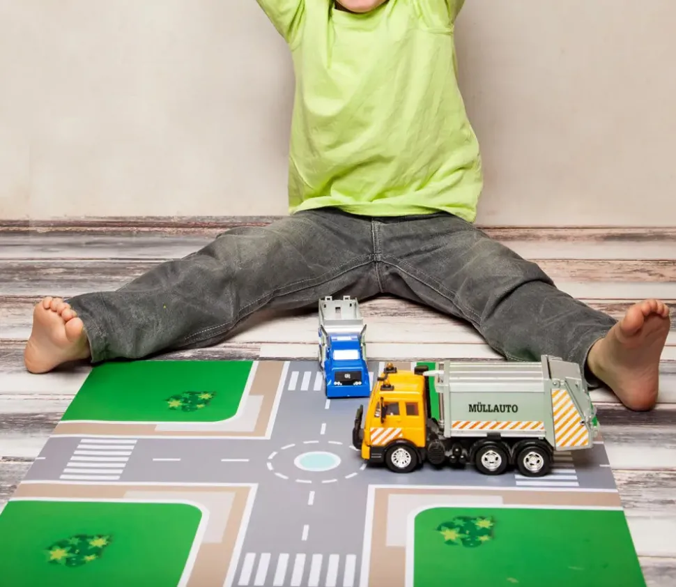 Tapis de jeu rue et rond point pour jeu de véhicules.