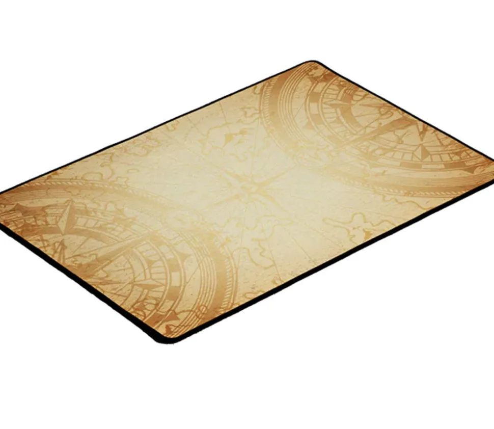 Tapis de jeux de société et stratégie de 60 x 40 cm compas jaune ocre style voyageur. Contour du tapis en double couture pour un plus bel effet et plus grande durée de vie.