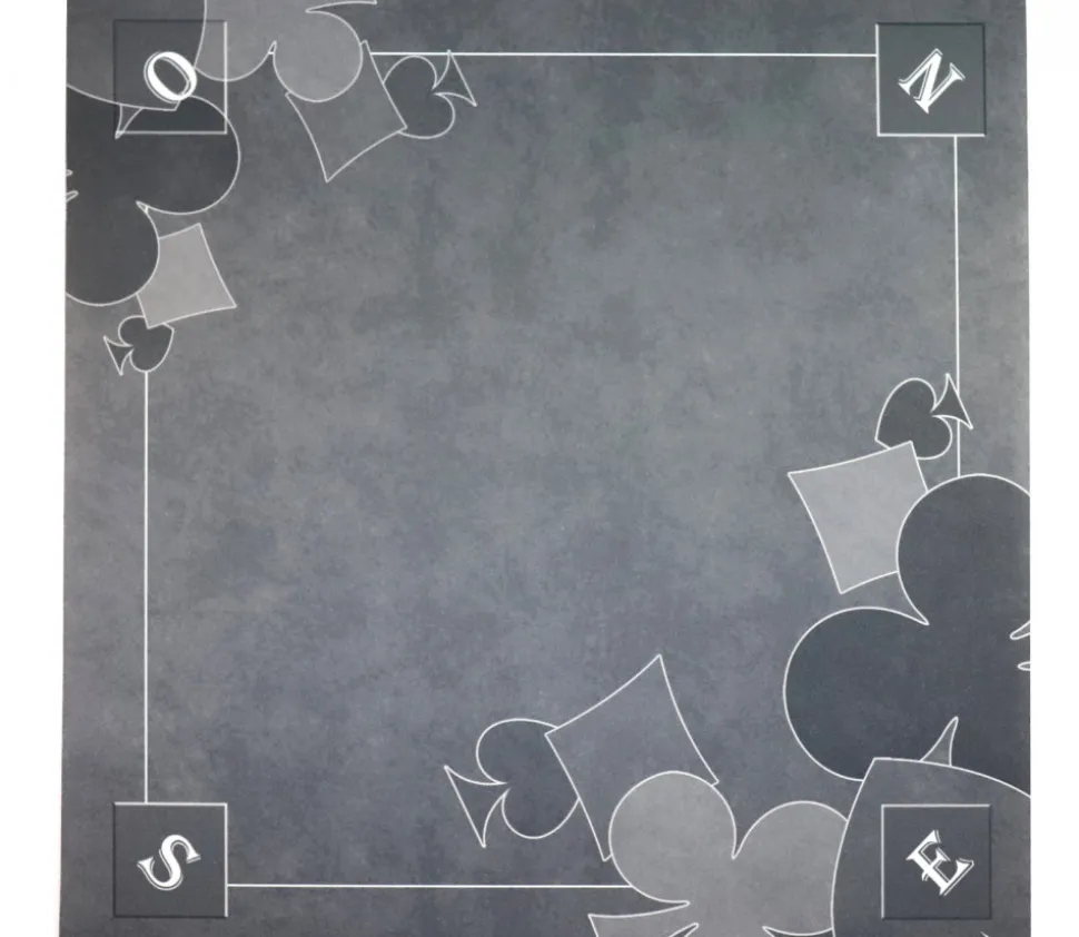 Tapis de jeu gris avec des motifs de cartes as, coeur, pique et trèfle en décor. Tapis carré de 60 x 60 cm pour jeux de cartes. Grand Tapis playmat très agréable au toucher. Ce tapis vous permettra de jouer à tous vos jeux de cartes ou de rôle favoris : Belote, Tarot, jungle speed … Sa texture vous permet de ramasser plus facilement vos cartes et tient bien sur votre table de jeu, super qualité qui vous permet des tirages de dés parfaits.