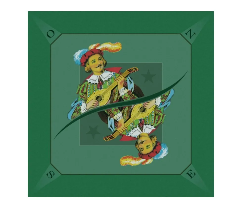 Tapis de jeu Tarot de 60 x 60 cm vert avec motif « Excuse ». Tapis de jeux de cartes à jouer. Grand tapis de jeu carré super belle qualité pensé par les joueurs de tarot. 1 face antidérapante et 1 face douce et super pour la glisse des cartes. Super confort, matière jersey néoprène.
