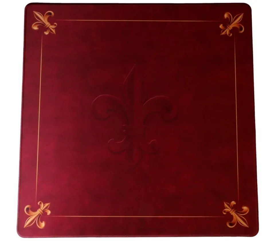 Tapis de jeu super qualité motif fond rouge, liseret et fleurs de lys dans les 4 coins en doré.