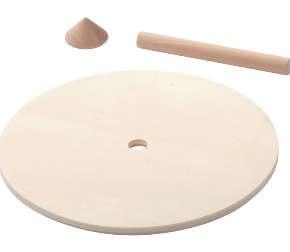 ATTENTION il est nécessaire de coller la plaque de bois (colle pour bois, non fourni) sur le cône afin que la plaque de bois puisse être entrainée par le tourillon.