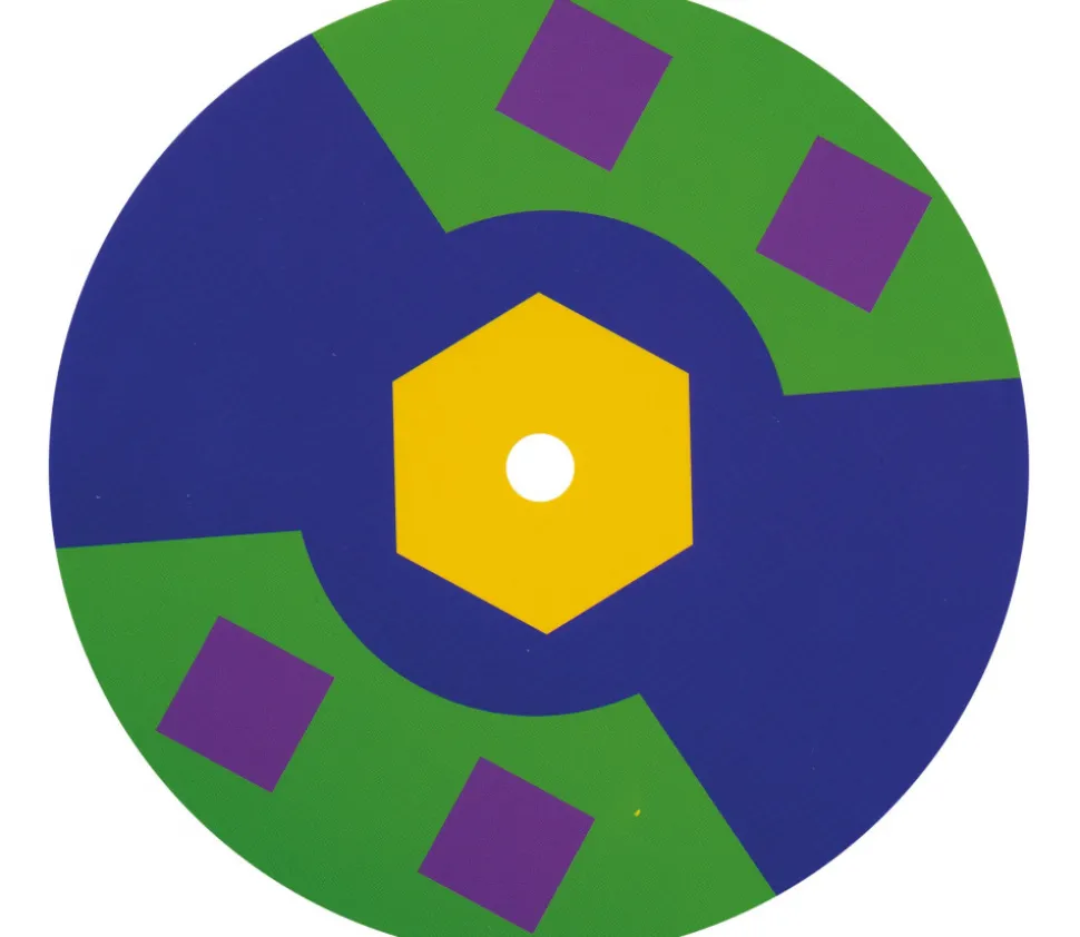 9 fiches cartonnées colorées et 1 fiche vierge de 15 cm de diamètre.