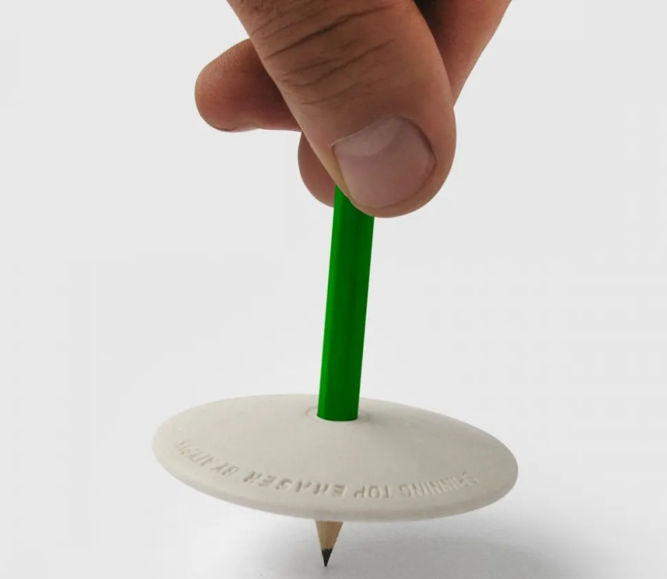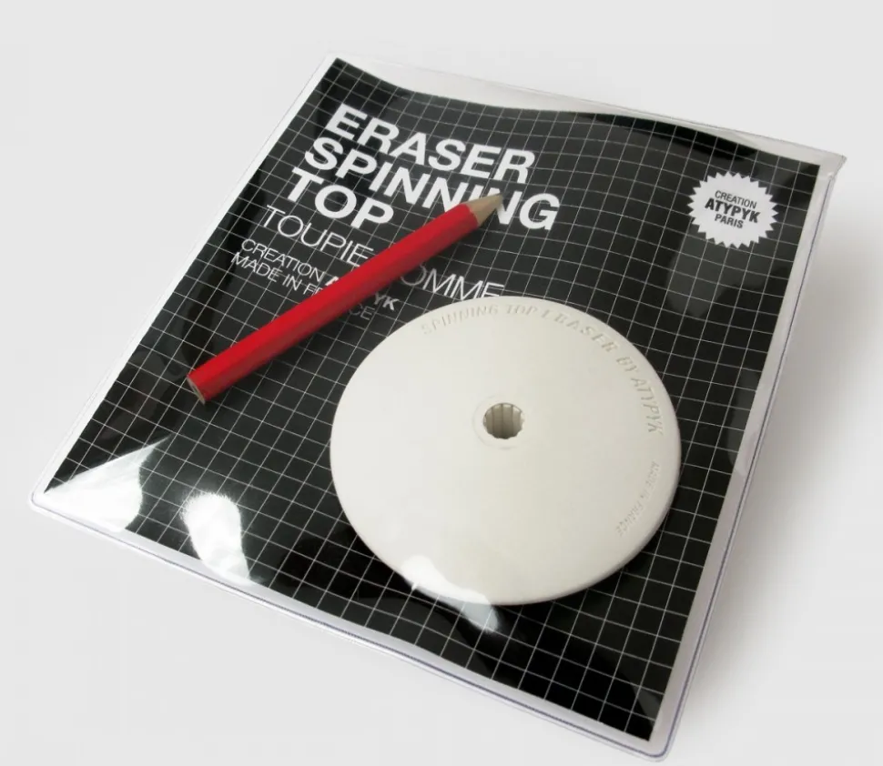 Toupie gomme originale pour gommer ou à faire tourner pour jouer. Idée cadeau pour les dessinateurs joueurs.
