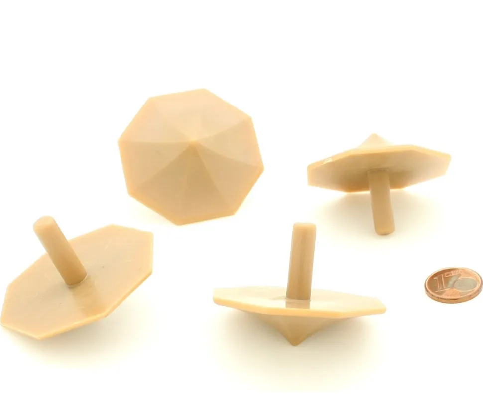 Toupie en plastique neutre à personnaliser de 47 x 40 mm. Toupie roulette avec 8 faces. Créer votre jeu de loterie ou des exercices adaptés à vos apprentissages avec cette toupie facile à faire tourner et à personnaliser avec étiquettes ou adhésifs. Faites tourner la toupie octogonale pour faire le choix entre les différentes options de vos jeux de société. Toupie en plastique marron.