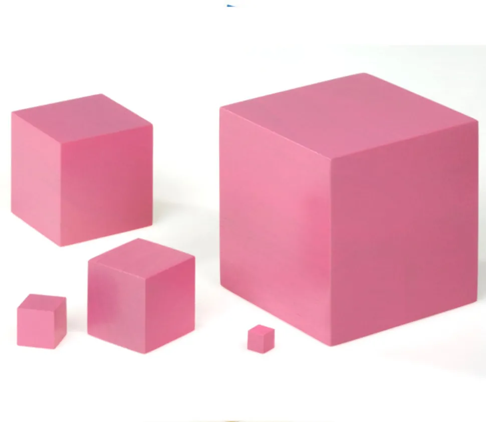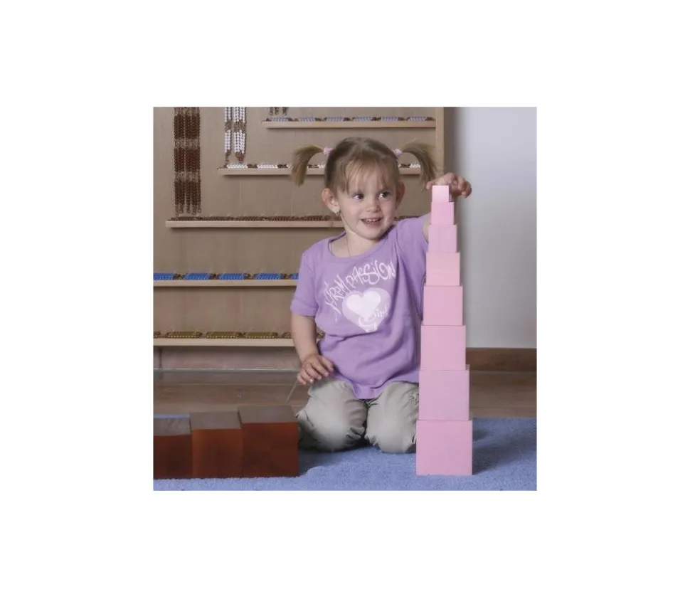 Tour Rose Montessori composée de 10 cubes en bois plein :