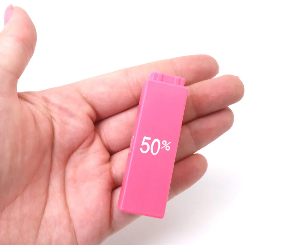 Ce kit possède 4 faces différentes avec un marquage associé à la taille : 1 face neutre, 1 face nombres décimaux, 1 face pourcentages, 1 face fractions.