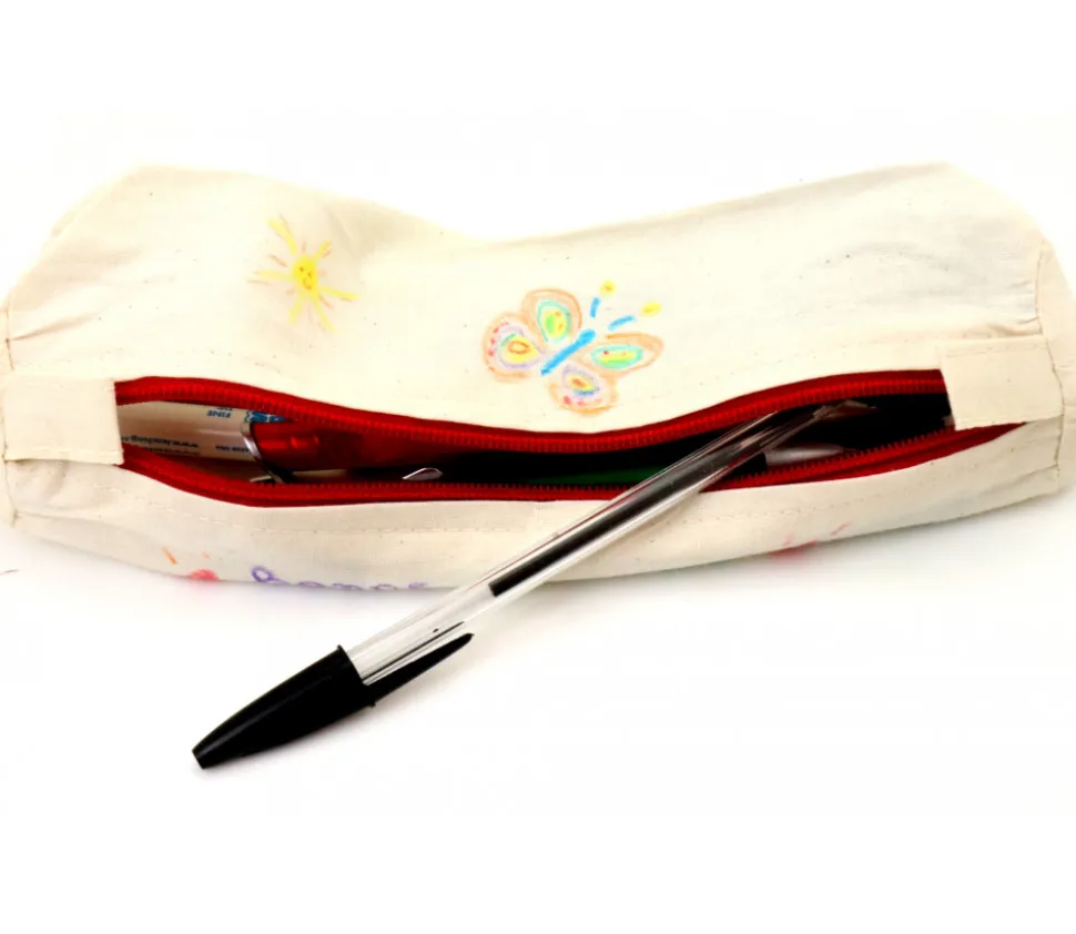Trousse écrue à personnaliser 23 cm de long et 6/7 cm de diamètre. Trousse en coton pour rangement de vos accessoires de jeu ou d’autres articles. Vos enfants peuvent aussi l’utiliser pour créer leur trousse personnalisée. Super une trousse pour ranger que vous pouvez facilement personnalisée. Trousse longueur pour les crayons à décorer.