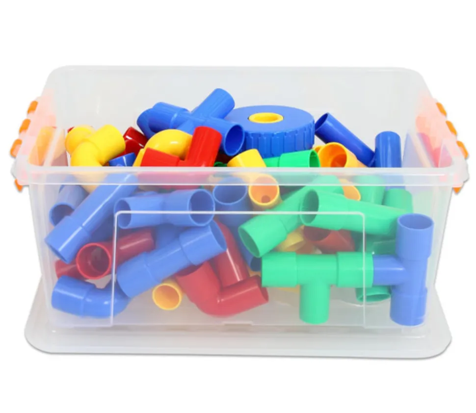 Matériel encastrables avec des tubes pour manipuler avec les enfants. Jeu de construction avec des tubes qui s’emboîtent. Ce kit comporte aussi des roues qui vous permettrons de créer un véhicule. Pour développer l’imagination ou simplement reproduire une voiture ou un tracteur. Tubes de couleurs vives pour la manipulation et la motricité fine. Il n’y a plus qu’à ajouter les roues. Manipulation facile pour les enfants à partir de 3 ans. Les tuyaux sont de plusieurs formes et couleurs. Set comprenant 60 tubes d’environ 7 cm de long et 4 grosses roues d’environ 7 cm.