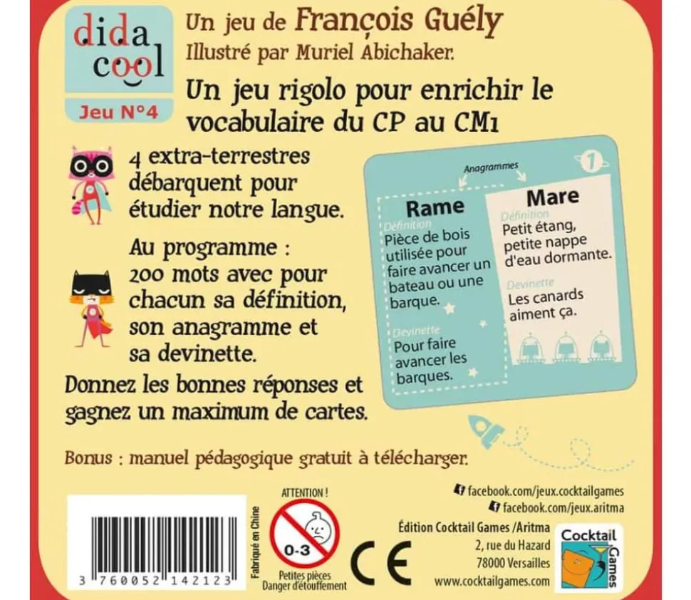 Vocadingo CP au CM1: Les anagrammes intriguent toujours les enfants ! C’est pourquoi VocaDingo propose 200 anagrammes, avec pour chacun sa définition et une devinette.